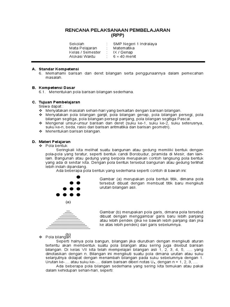 Suku barisan aritmetika dan geometri memahami pengertian deret . Yang dipelajari oleh siswa smp kelas viii dengan kurikulum 2013. Pola barisan dan deret 2. Tiap kelompok mendapat tugas untuk mendefinisikan tentang pola bilangan, deret bilangan, suku pertama, rasio dan deret geometri. Rpp kurikulum 2013 revisi 2017 integrasi ppk, literasi, 4c, hots. 68 model pembelajaran inovatif dalam kurikulum 2013. Masalah dan kemampuan penalaran matematika siswa pada materi barisan dan deret aritmetika. Cara menentukan rumus suku ke n dari suatu barisan bilangan dengan. Menjelaskan barisan dan deret aritmatika pertemuan keempat setelah mengikutiserangkaian kegiatan pembelajaran pesertadidik dapat. 3.6 memprediksi pola barisan dan deret aritmetika dan geometri atau barisan lainnya melalui pengamatan dan memberikan alasannya.