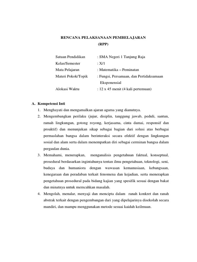 Rencana pelaksanaan pembelajaran (rpp) dalam jaringan (daring) satuan pendidikan mata pelajaran kelas/ semester materi p. Sman 21 kota bandung mata pelajaran : Rencana pelaksanaan pembelajaran ( rpp ) satuan pendidikan : Fungsi persamaan dan pertidaksamaan eksponen dan logaritma. Rpp 1 lembar matematika peminatan sma kelas 10,11,12 semester 1 dan 2.